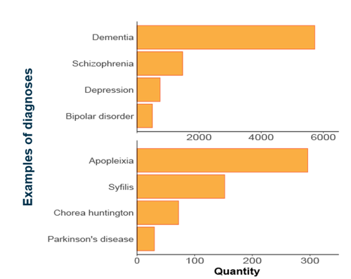 The brains are collected from Danish psychiatric patients between 1945-1982. The most frequent diagnoses among the patients are dementia, schizophrenia, mania, and depression.